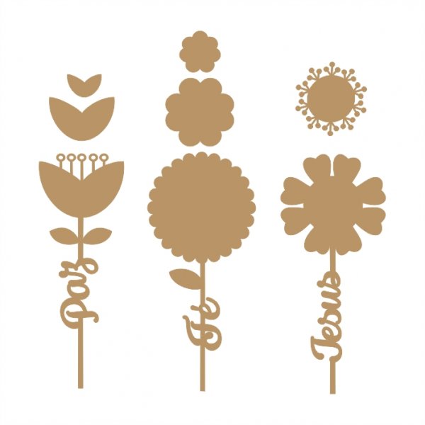 Kit com 3 Flores Jesus, Paz e Fé
