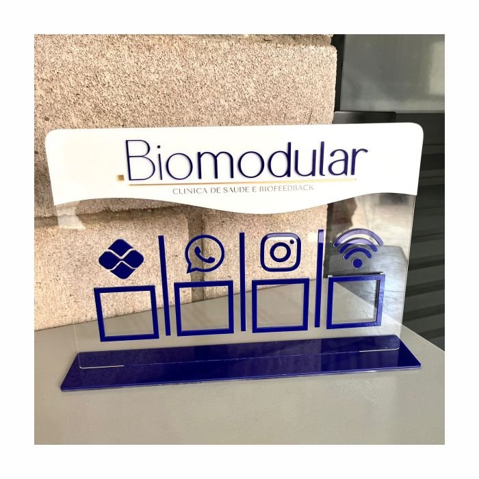 Placa com 4 QR CODE Personalizada em Acrílico com Base